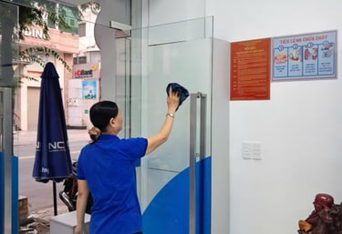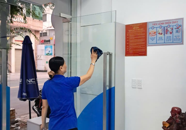 Vệ sinh cửa kính, vách kính, cửa gỗ, v.v…